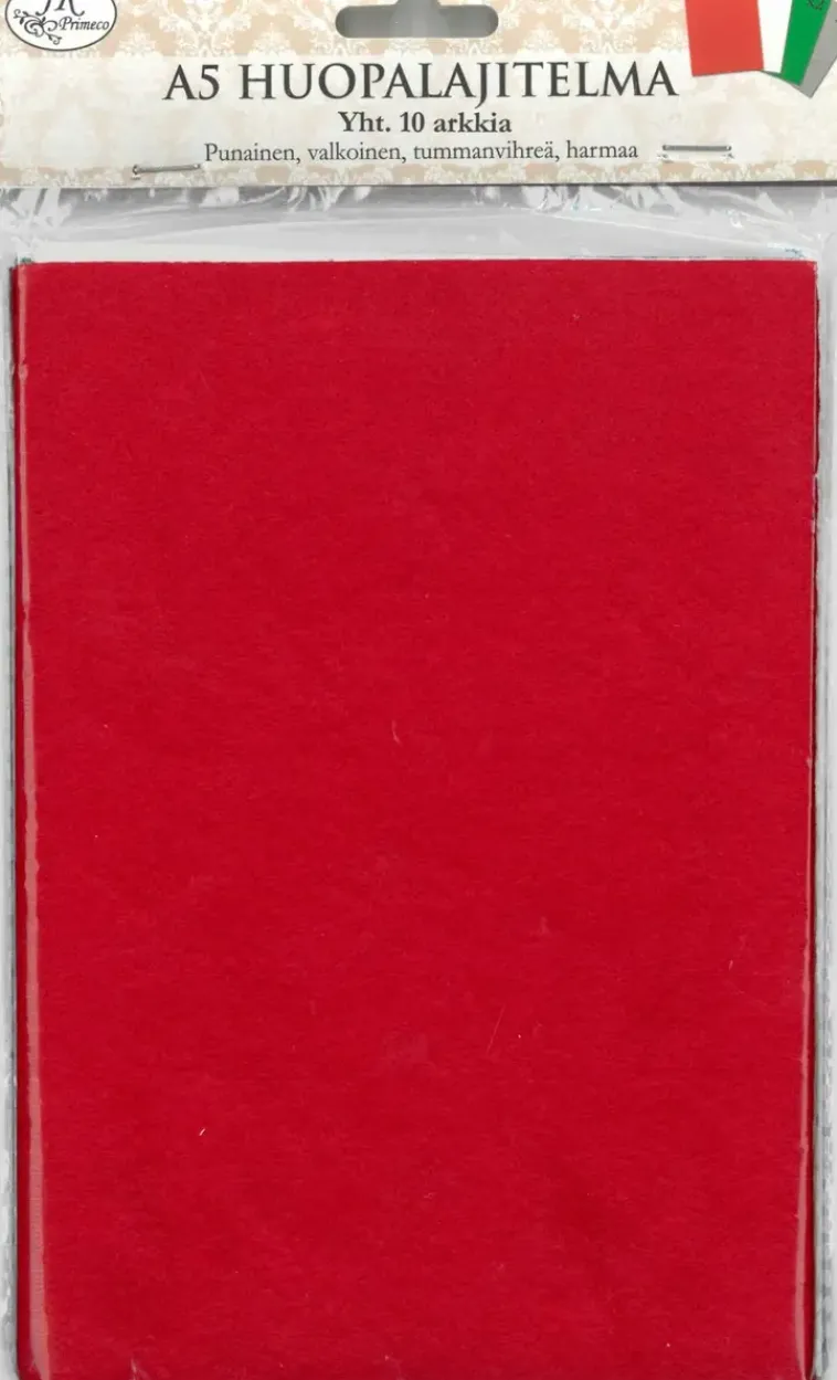 A5 Huopalajitelma Joulunväreissä: Punainen (4Arkkia), Harmaa (2Arkkia), Valkoinen (2Arkkia) Ja Harmaa (2Arkkia). Pakkauksessa Yhteensä 10 Arkkia.