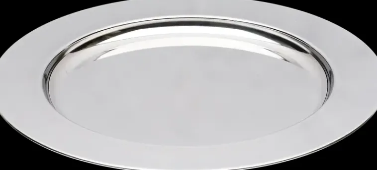 Pyöreä Metallitarjotin Ruostumatonta Terästä. Tarjottimen Halkaisija 30 Cm. Tyylikäs Tarjotin Niin Sisutukseen Kuin Tarjoiluun.