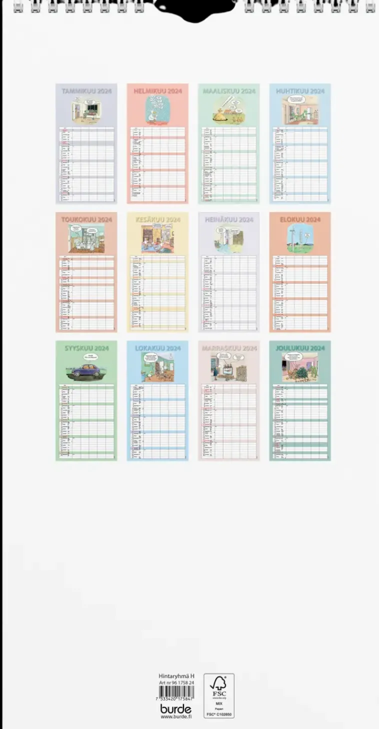 12 Kuvaa. Humoristinen Kalenteri Viidellä Sarakkeella. Kätevä Paperitasku Tärkeille Papereille Ja Kynänpidike. Kalenteri Sisältää Nimipäivät, Liputuspäivät, Juhlapyhät Ja Kuun Vaiheet. Suomenkielinen. Parikierresidottu. Fsc®. Koko (Ilman Taskua): 220X430 Mm.