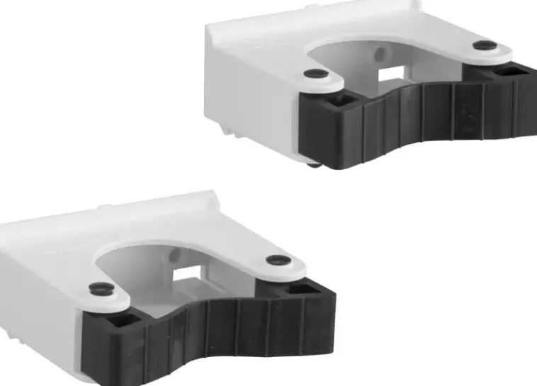 Työkalupidin, Joka Soveltuu Varrellisten Työkalujen Kuten Haravan Tai Luudan Ripustamiseen. Painetaan Paikoilleen Työkalukiskoon Tai Normaaliin Kantokiskoon. Toimitetaan 2 Kpl:En Pakkauksessa.
