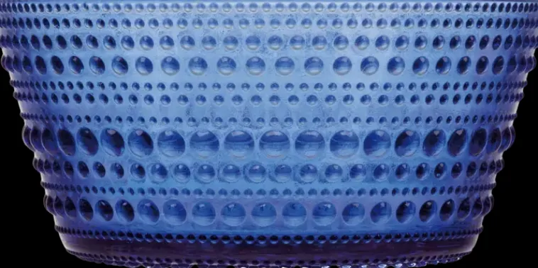 Oiva Toikan Kastehelmi-Sarja Pisaroi Aamukasteen Tavoin. Pieni Ultramariinin Sininen Kastehelmi-Kulho On Valmistettu Suomessa.