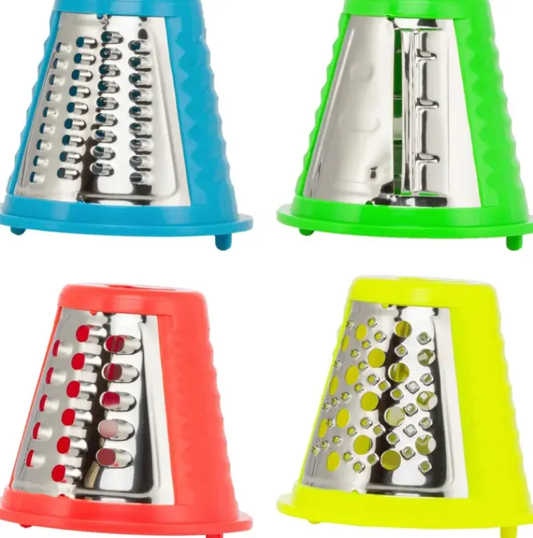 Raastin, Joka On Monitoimilaite. Neljä Erilaista Rumpua Hedelmien/Kasvisten Raastamiseen Ja Viipalointiin, Perunan Soseuttamiseen Jne. Kaikki Osat Ovat Irrotettavissa Ja Helppo Puhdistaa. Liukumattomat Kumijalat. Teho 200 W / Jännite 220 – 240 V~ / 50 – 60 Hz.