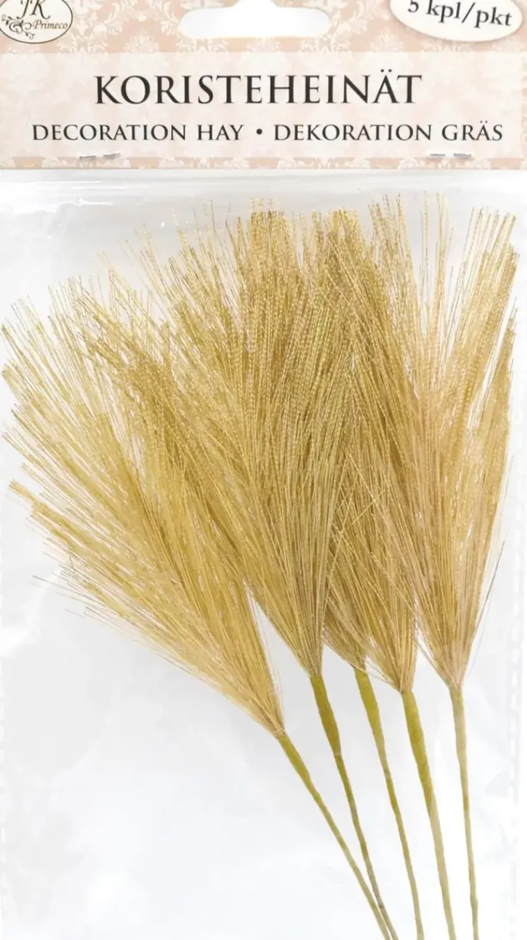 Koristeheinät Askarteluun Ja Koristeluun. Pakkaus Sisältää Viisi Kappaletta Koristeheiniä. Yhden Heinän Koko On N. 16Cm. Heinän Materiaali On Tekokuitua.