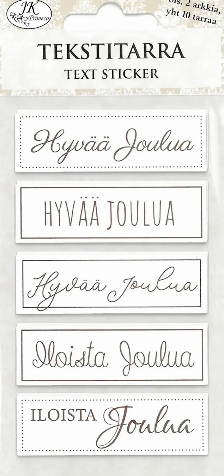 Be the first to review “J.K. Primeco Askartelutarvikkeet-Tekstitarra Jouluntoivotukset Tummanruskea 2Ark/Pkt” Peruuta vastaus