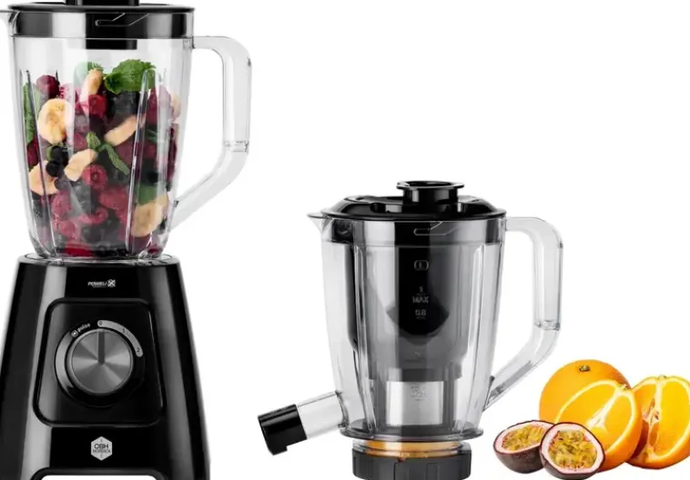 Haluatko Puristaa Mehua Vai Sekoittaa Smoothieita Tällä Ainutlaatuisella Kaksitoimisella Tehosekoittimella Voit Valmistaa Sekä Täyteläisiä Smoothieita Että Janon Sammuttavia Tuoremehuja. Blendforce With Juice Jar Kahdella Astialla: Tehosekoitusastia Smoothieita Varten Sekä Mehunvalmistusastia Raikkaita Ja Kirkkaita Tuoremehuja Varten. Tehosekoitusastian Tilavuus On 1,25 Litraa. Kahden Nopeusvaihtoehdon, Sykäystoiminnon Ja Kuusisiipisen Teräosan Ansiosta Blendforce With Juice Jar Valmistaa Smoothieita Nopeasti Ja Helposti. Tehosekoittimen Teräosan Voi Irrottaa Puhdistamisen Helpottamiseksi. Tehosekoitus- Ja Mehunvalmistusastiat On Helppo Vaihtaa Keskenään Sen Mukaan, Mitä Haluat Tehdä. Voit Valmistaa Tuoremehua Kaatamalla Hedelmät Ja Vihannekset Mehunvalmistusastiaan Ja Valitsemalla Nopeuden. Painin Työntää Raikkaan Tuoremehun Putkea Pitkin Juomalasiin Tai Pulloon. Mehunvalmistusastian Suodattimen Ansiosta Tuoremehu On Kirkasta Ja Ohutta. Blendforce With Juice Jar Mahdollistaa Täyteläisistä Smoothieista Ja Janon Sammuttavista Mehuista Nauttimisen. Yhdistetty Tehosekoitin Ja Mehupuristin. Smoothieita Ja Tuoremehuja Helposti. Mehunvalmistusastiassa Suodatin, Painin Ja Putki Tippalukolla. 2 Nopeutta, Sykäystoiminto Ja 6-Siipinen Terä Smoothieiden Valmistamiseksi Nopeasti. 1,25 Litran Tehosekoitusastia Ja 1 Litran Mehunvalmistusastia.