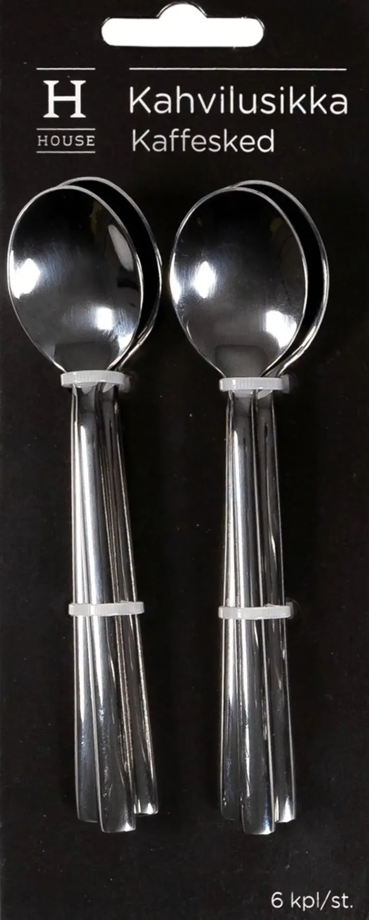 House Scandic -Kahvilusikka, Kuuden Kappaleen Setti. Valmistettu Ruostumattomasta Teräksestä. Pituus 20,5 Cm. Aterimissa On Soikean Siro, Käteen Mukavasti Asettuva Varsi. House Scandic -Sarjaan Kuuluu Myös Ruokaveitset, -Haarukat Ja -Lusikat.
