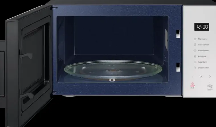 Samsung Bespoke Mikroaaltouuni. Uusi Tyylikäas Ulkonäkö Ja Erittäin Helpot Ja Monipuoliset Ohjelmat. Tilavuus 23L, Jossa 28.8Cm Pyörivä Lautanen.