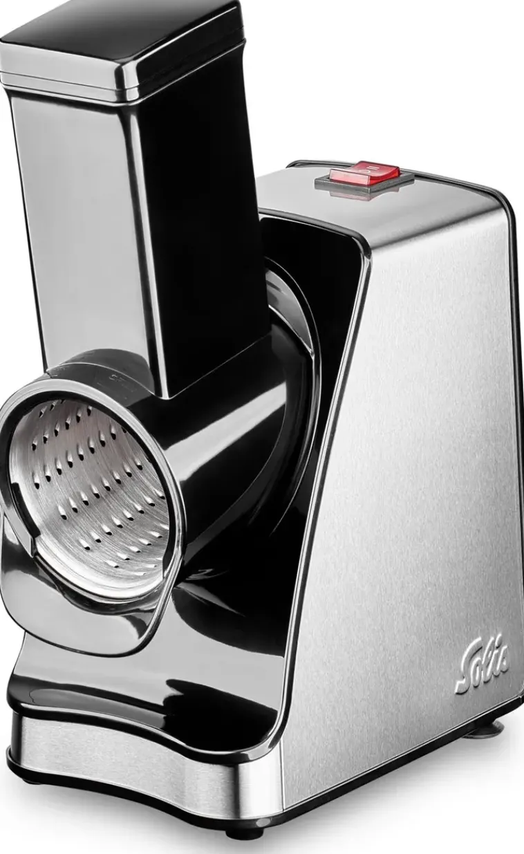 Solis Slice &Amp; More -Vihannesleikkurilla Raastat, Viipaloit Ja Rouhit Ainekset Salaatteihin Ja Kasvisruokiin Tehokkaasti Ja Vaivatta. Helppokäyttöisen Raastimen Myyntipakkaus Sisältää Viisi Ruostumattomasta Teräksestä Valmistettua Huipputerävää Rumputerää. Leikkuurummut Ohueen Ja Paksuun Viipalointiin. Raastamiseen Ja Rouhimiseen Tarkoitettu Terä On Ihanteellinen Koville Aineksille, Kuten Juustoille, Pähkinöille Ja Suklaalle. Karkean Raastamisen Terä On Ihanteellinen Omenoille, Porkkanoille, Sellerille Ja Juustolle. Viides Rumpu Soveltuu Yleiseen Raastamiseen Sekä Keitetyille Pernoille Ja Vaikkapa Valkosipulille. Myyntipakkauksessa Myös Kaksi Kannellista Säilytyskoteloa, Joihin Kumpaankin Mahtuu 2 Leikkuurumpua.Laitteen Muoviosat Ovat Bpa-Vapaata Muovia Ja Laitteen Pinta On Tyylikästä Harjattua Terästä.Laitteessa On Vahva Ja Kestävä 350W Moottori Ja Kaksi Nopeusasetusta. Suuri Syöttöaukko (5,5 X 7Cm) Lisää Käyttömukavuutta. Säilytyspaikka Virtajohdolle Laitteen Pohjassa.