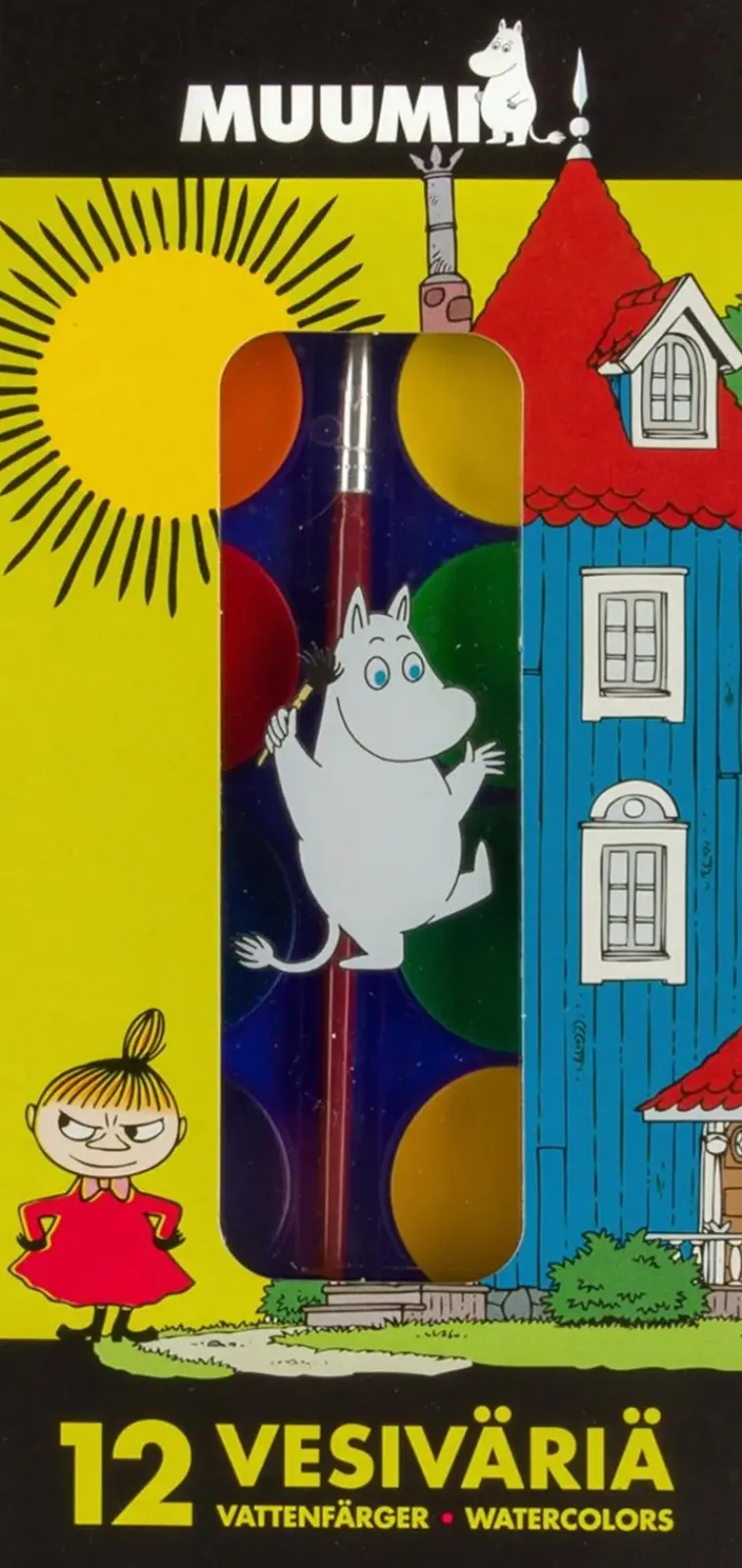 Muumi Vesiväripakkauksessa On 12 Väriä Ja Sivellin. Värinapit Ovat 29Mm Halkaisijaltaan. Värit Ovat Turvallisia Ja Myrkyttömiä. Kestävä Saranallinen Rasia, Jossa Hauska Muumi Tarra! Ce-Hyväksytty. Sisältää Pieniä Osia, Eikä Sovellu Alle 3-Vuotiaille. Käytettävä Aikuisen Valvonnassa