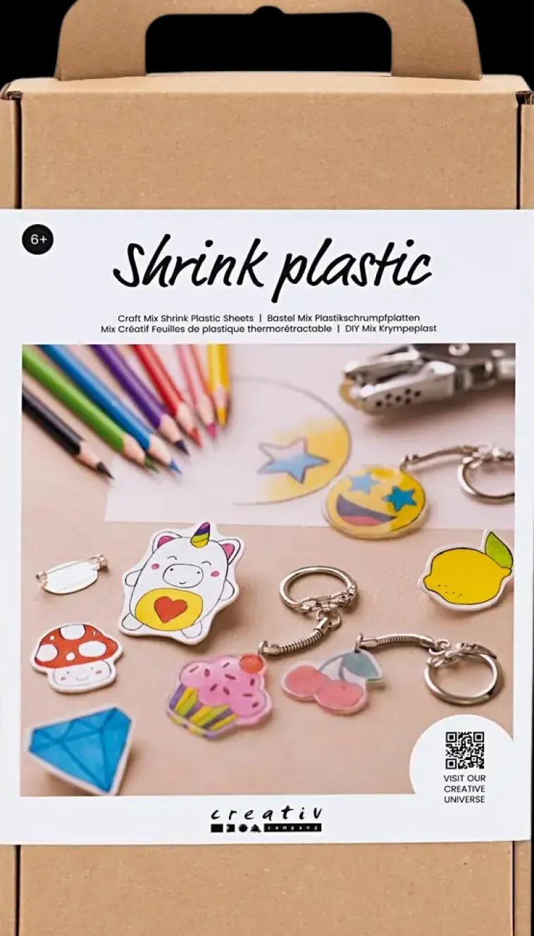 Tämän Pakkauksen Sisällöllä Voit Tehdä Omia Tarvikkeitasi Kutistemuovilevyistä. Setti Sisältää Kaikki Tarvittavat Materiaalit Ja Ohjeet.≪Br≫≪Br≫Tämä On Täydellinen Setti, Jos Haluat Tehdä Tarvikkeita Kutistemuoviarkeista. Se Sisältää Kaiken Tarvittavan Alkuun Päästäksesi. Kutistemuoviarkkeja On Helppo Koristella Värikynillä – Ja Sen Jälkeen Voit Seurata, Miten Ne Kutistuvat Uunissa. Päädyt Suloisiin Pikkufiguureihin – Ja Omiin Ainutlaatuisiin Tarvikkeisiisi. Löydät Ohjeet Pakkauksen Takaa – Tai Skannaa Qr-Koodi Ja Seuraa Ohjeita Verkossa.≪Br≫≪Br≫Sisältää: Kutistemuoviarkit, Värikynät, Avainrenkaat, Rintaneula, Lävistyspihdit, Liima