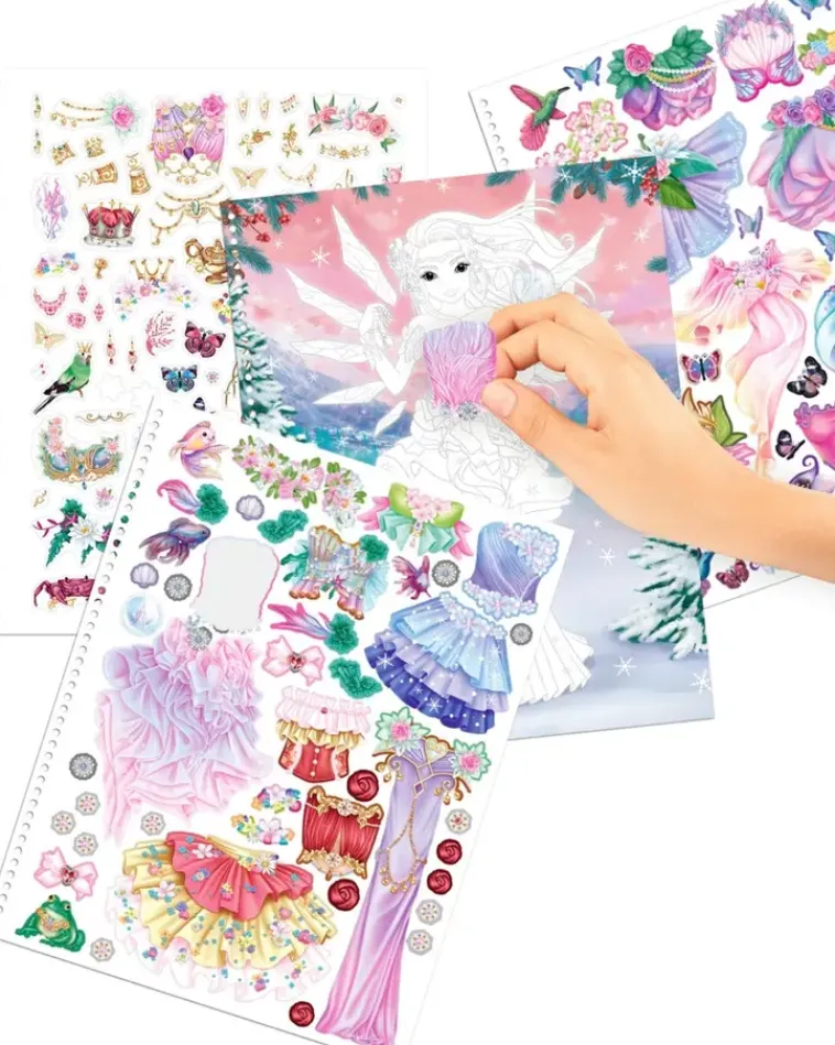 Uppoudu Topmodelin Fantasiamaailmaan, Anna Mielikuvitukselle Vapaat Kädet Ja Suunnittele Näyttäviä Asuja Fantasiaprinsessoille! Kirjassa Mukana Suunnittelusivujen Lisäksi Tarroja, Inspiraatiosivuja Ja Kohokuviosivu.
