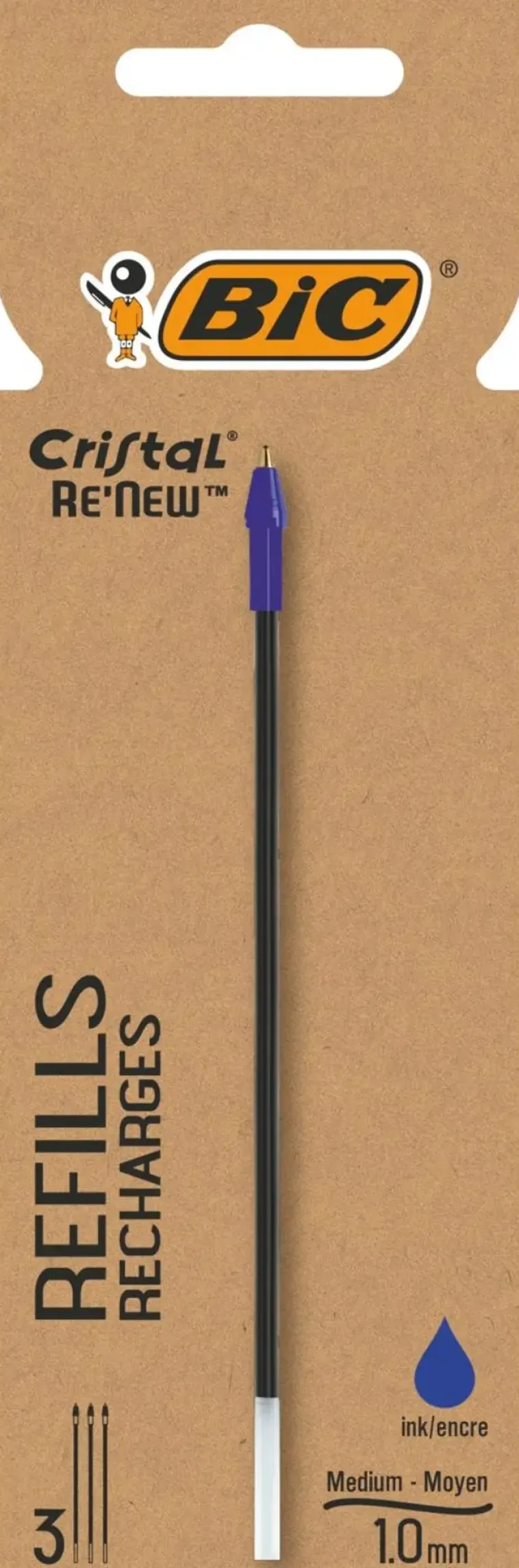 Kolme Kappaletta Täyttösäiliöitä Bic Cristal Re-New Kuulakynään. Sininen Muste.