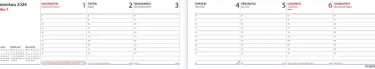Suomen Suosituin Työpisteen Vakiokalenteri. Koko 255 X 95 Mm; Sidottu; Päiväkirja 50/2023–1/2025; Vuosisuunnitelma 2025; Kansalliset Vapaapäivät Päiväkirjan Sivuilla Ja Luettelona; Muistiinpanosivuja; Kartonkikannet; Fsc®-Sertifioitu Tuote.
