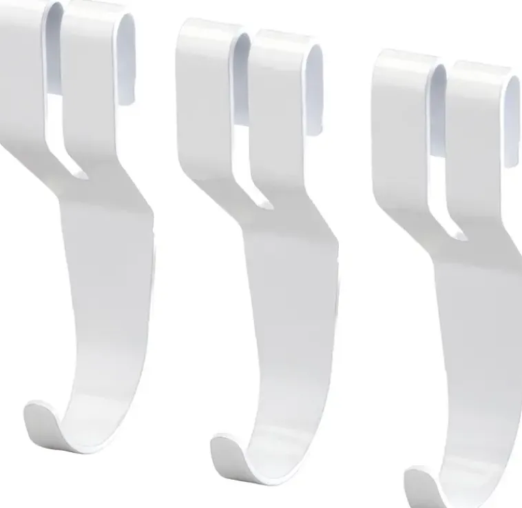 Koukku, Jonka Voi Kiinnittää Lankahyllyn Tai Hyllykorin Alapintaan Ja Johon Voi Ripustaa Käsilaukkuja, Vöitä, Solmioita, Koruja, Huiveja, Hattuja Tai Muita Asusteita. Voidaan Asentaa Mihin Tahansa Kohtaan Hyllyn Alapintaan. Toimitetaan 3 Kpl:En Pakkauksessa.