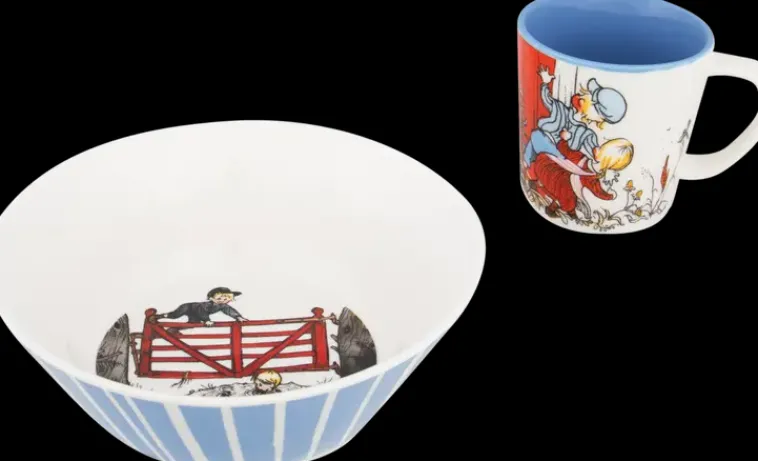Keraaminen Lastenastiasto Värikkäällä Vaahteramäen Eemeli -Kuosilla. Astiasto On Pakattu Kauniiseen Laatikkoon, Joka Sopii Tyylillisesti Laatikon Sisältöön. Mukin Vetoisuus 2 Dl. Uunin, Mikron Ja Konepesun Kestävä.