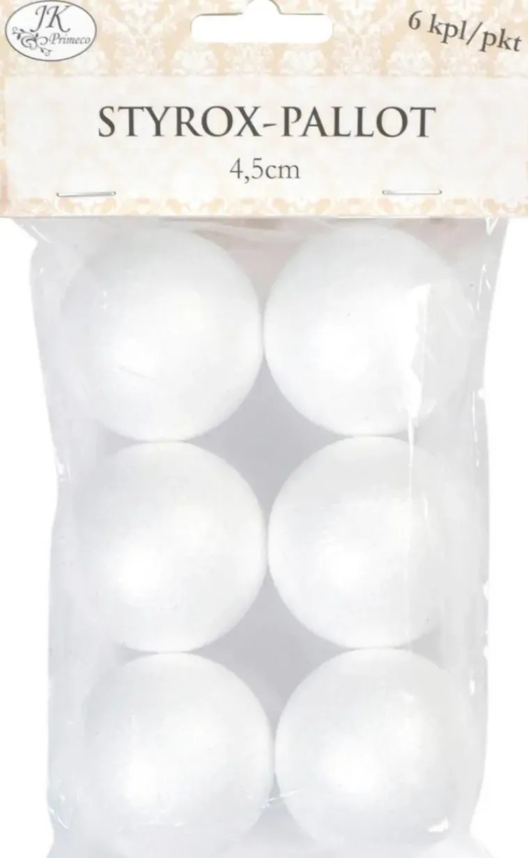 J.K. Primeco Askartelutarvikkeet-Styrox-Pallo 4,5Cm 6Kpl