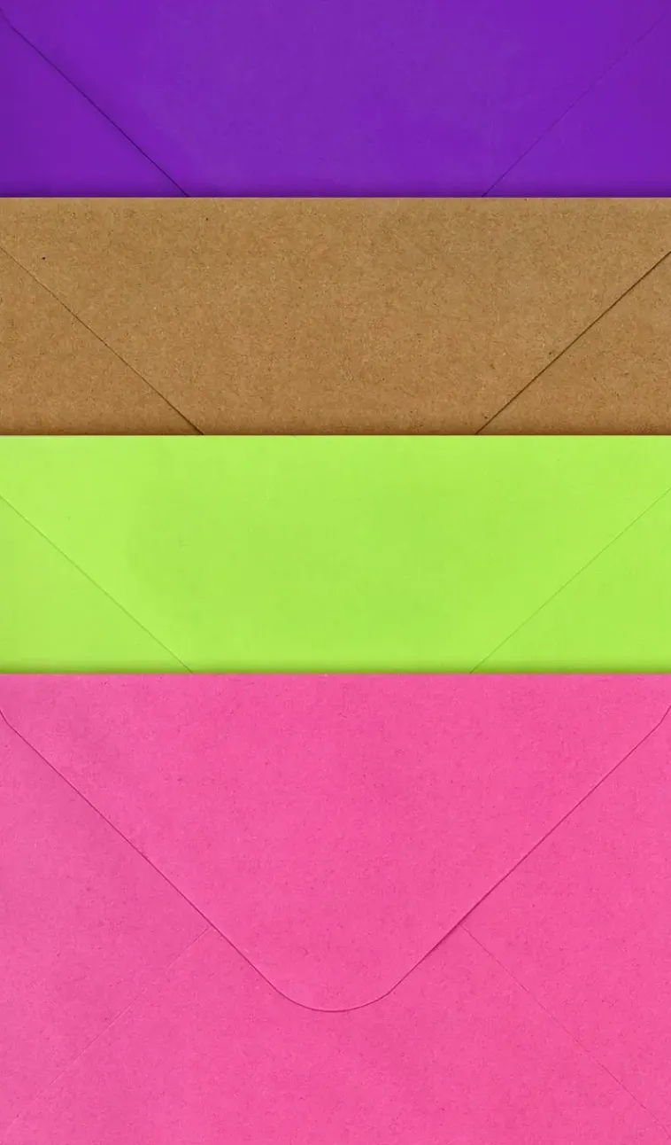 Pakkauksessa C6-Kirjekuoria Neljällä Eri Värillä. 5Kpl Per Väri.