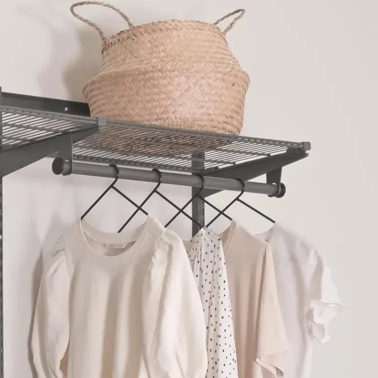 Seinään Kiskolla Tukevasti Kiinnitettävä Säilytysjärjestelmä On Helppo Asentaa. Väri Antrasiitti. Valmistettu Suomessa.