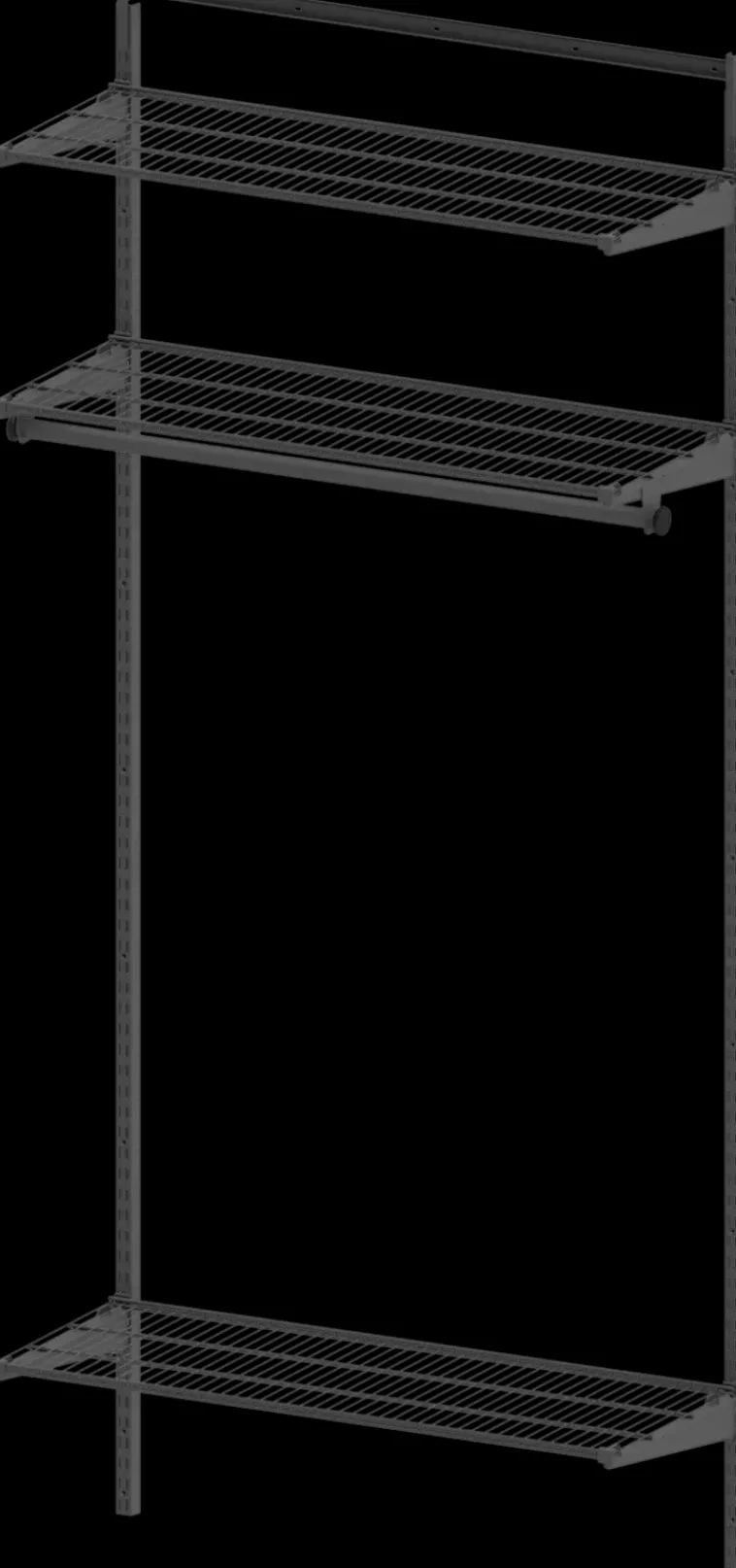 Seinään Kiskolla Tukevasti Kiinnitettävä Säilytysjärjestelmä On Helppo Asentaa. Väri Antrasiitti. Valmistettu Suomessa.