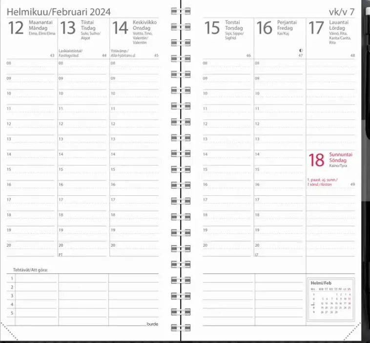 New Kalenteri 2024 Plan Musta Keinonahka (Kaksikielinen) Kalenterit