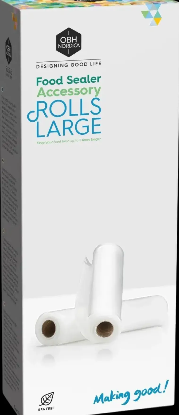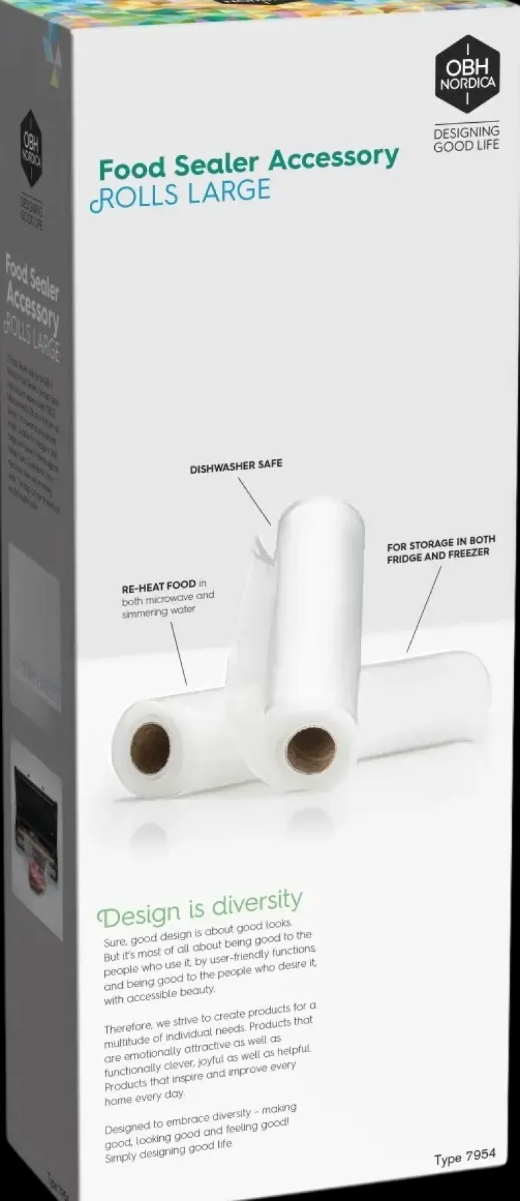 Food Sealer -Pussirullat Obh Nordican Tyhjiöpakkaajaan. Voit Itse Valita Food Sealer -Pussin Koon. Soveltuu Elintarvikkeiden Säilyttämiseen Jääkaapissa Ja Pakastimessa. Suojaa Elintarvikkeita Kylmävaurioilta. Soveltuu Elintarvikkeiden Lämmittämiseen Mikroaalto-Uunissa Sekä Poreilevassa Vedessä, Jonka Lämpötila On Hieman Kiehumispisteen Alapuolella. Pussit Ovat Uudelleenkäytettäviä Ja Konepesun Kestäviä. 2 Kpl Pussirulla: 28 Cm X 3 M/Rulla.