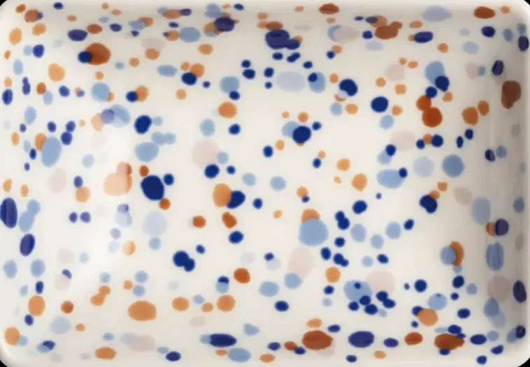 Iittala Juhlistaa Oiva Toikan Värikästä Mielikuvitusta Uudella Siniruskealla Helle-Kuviolla. A7-Kokoinen Helle-Lautanen Sopii Dipeille Ja Kastikkeille.