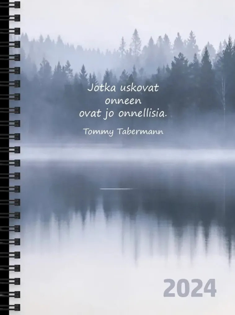 Tommy Tabermannin Runot Ovat Pääosassa Tässä Vuoden 2024 Kalenterissa. Seesteinen Kansitaide Luo Rauhallisen Tunnelman. Viikkonäkymässä On Riittävästi Tilaa Muistiinpanoille Ja Vaikkapa Omille Runoillesi! Tässä Kartonkikantisessa Kierresidotussa Mallissa On Kaksikielinen Viikkonäkymä (Suomi Ja Ruotsi), Ja Se Pysyy Pöydällä Avattuna. Suomalaiset Nimi- Ja Juhlapäivät. Sisältää Vuosisuunnitelman, Liputuspäivät, Suomenkieliset Nimipäivät Ja Runsaasti Viivoitettua Muistiinpanotilaa Ja Tehtävälistoja. Valmistettu Fsc-Sertifioidusta Paperista.