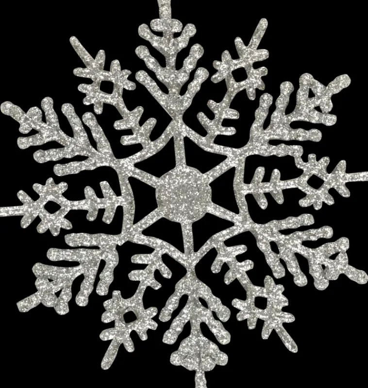 Outlet Koriste Lumihiutale Glitter Hopea 6Kpl M Sesonkijuhlatarvikkeet