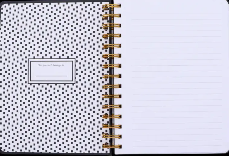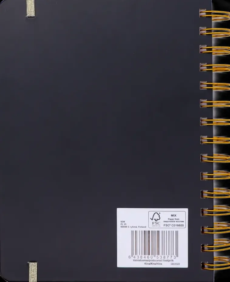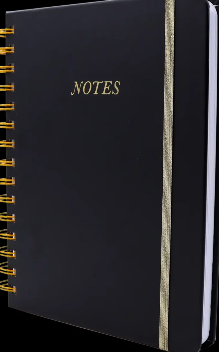 Viivoitettu A5-Kokoinen Kierremuistikirja. 120 Lehteä, Kullansävyiset Yksityiskohdat Ja Kuminauhakiinnitys.