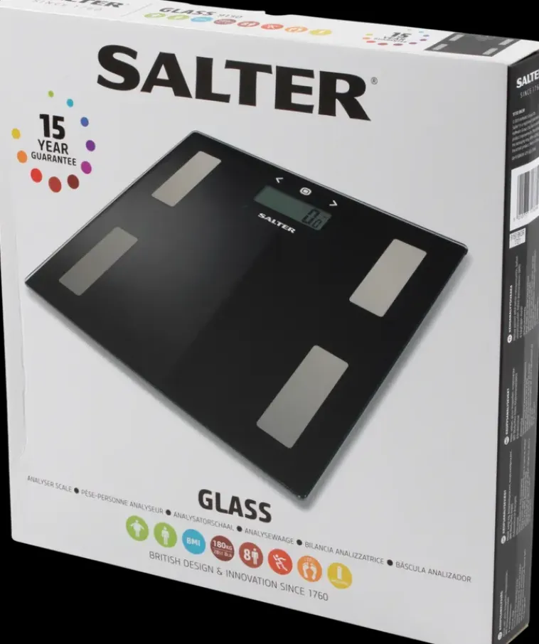 Salter Kehonanalyysivaaka On Moderni Sekä Tekniikaltaan, Että Tyyliltään. Se On Valmistettu Mustasta Lasista Ja On Muotoilultaan Elegantin Minimalistinen. Vaaka Antaa Tarkat Tulokset Aina 180 Kg Saakka 100 Gramman Tarkkuudella Painon Mittaamisen Lisäksi Vaa’Alla Voi Mitata Rasvaprosentin, Kehon Nestemäärän Sekä Painoindeksin. Vaakaan Voi Tallentaa Kahdeksan Eri Henkilön Tiedot Muistiin, Joten Jokaisen On Helppo Seurata Omia Tuloksia Siitä. Takuuaika 15 Vuotta.