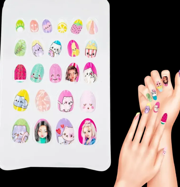 Itsekiinnittyvät Tekokynnet Erilaisilla Kuvituksilla, Yksi Paketti Sisältää 24 Värikästä Kynttä Eri Kokoisina. Helppo Kiinnittää Ja Poistaa, Mukana Ohjeet.