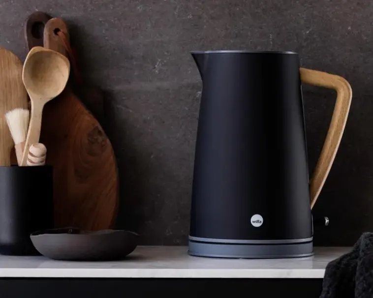 Tyylikäs Mattamustaksi Maalattu, Ruostumattomasta Teräksestä Valmistettu Vedenkeitin 1,7 Litran Tilavuudella. 360° Pyörivän Pohjan Ansiosta Sitä On Helppo Käsitellä. 2000 Watin Teholla Varustettu Keitin Kiehauttaa Veden Nopeasti Ja Automaattinen Virrankatkaisu Katkaisee Virran, Kun Vesi On Kiehunut. Johto Voidaan Kiertää Pohjaan Säilytystä Varten. Skandinaavista Ilmettä Lisää Tyylikäs Puumainen Kahva.